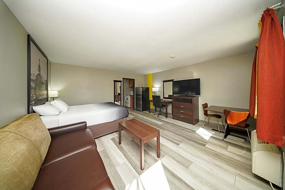 Offering free WiFi, this suite features air conditioning and a cable TV with a Blu-ray DVD player. A microwave and a refrigerator are also included. The living area is separate from the bedroom and contains a sofa bed.